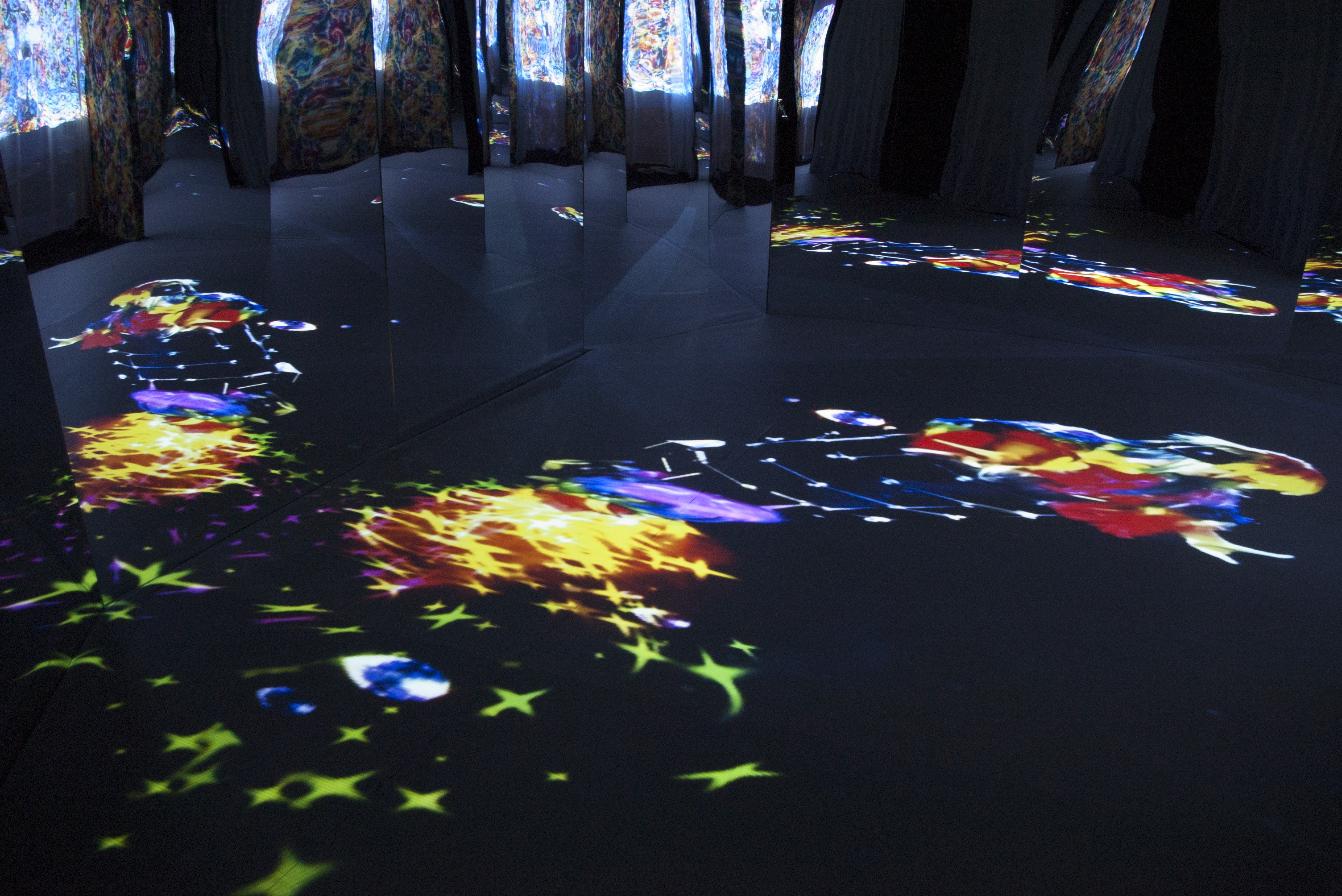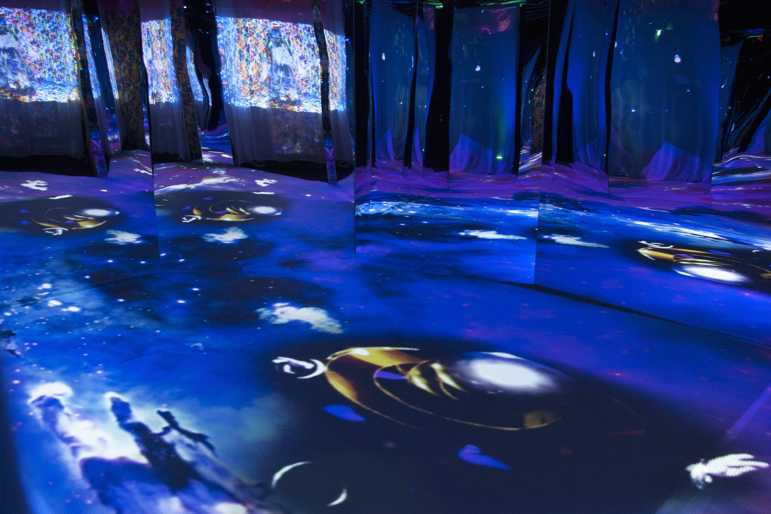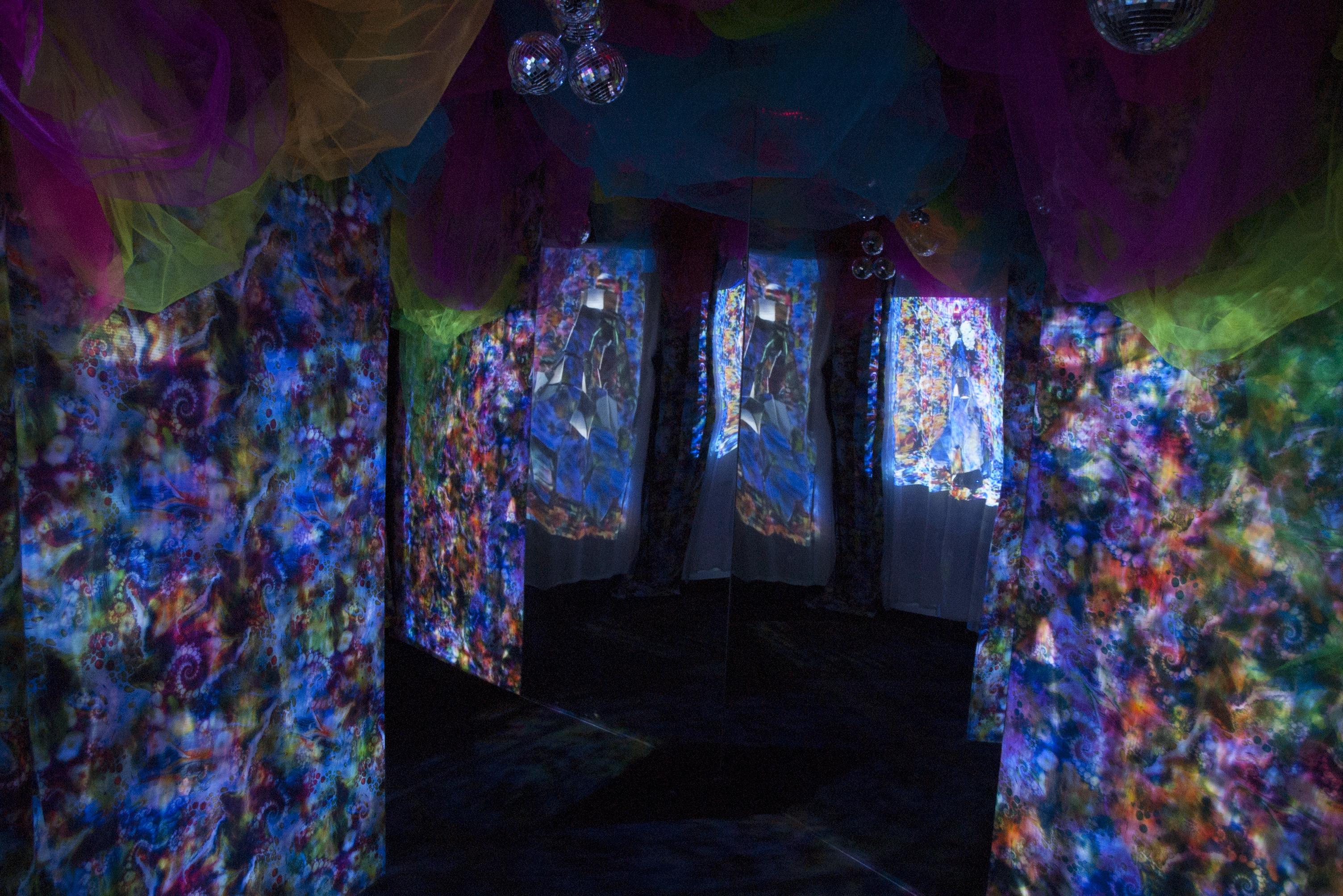 Immersive installation with projections, sculptures and soundscape set in built mirrored environment